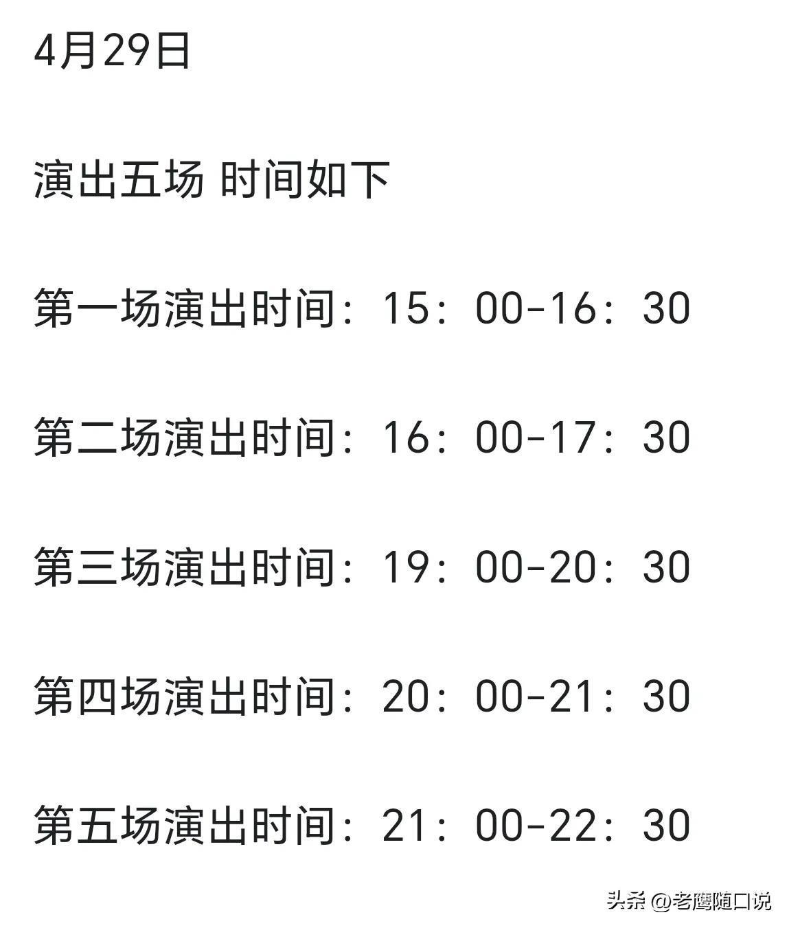 大家看一下这个演出的时间表(网上找的五一期间的时间表)