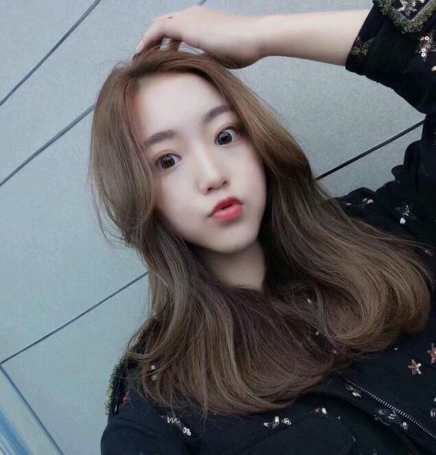 上图中的发色是棕色发色,非常的显白,白皮适合黄皮也适合。中分的发型,是普遍认为瘦脸效果比较好的发型,