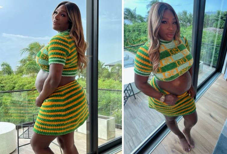 只见,小威廉姆斯穿着横条花纹的套装短裙,露出自己的孕肚,弧度已经非常明显了,感觉小公主已经等不及要看看这个世界。