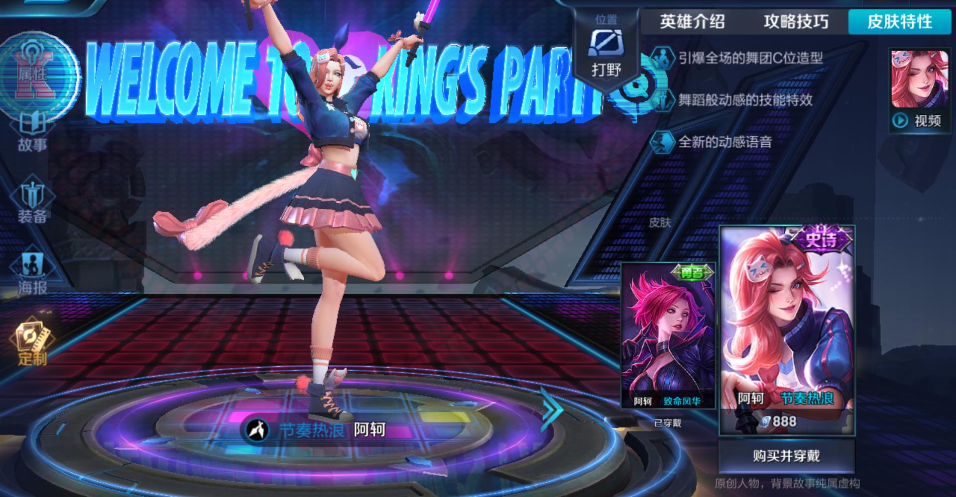 王者荣耀在不知不觉之间已经到了自己的三周年庆典,陪着我们度过了一个又一个精彩的赛季。之所以王者荣耀可以一直火爆到现在,除了跟王者荣耀官方一直不断的推出新模式和新英雄有关,还与王者荣耀里面各种非常好看的皮肤有关。在王者荣耀游戏之中的皮肤除了每一个都会给我们一点皮肤加成以外,最重要还在于不同的皮肤会给我们带来不同的手感。这不最近一段时间,王者荣耀就推出了一款阿珂的史诗级别的皮肤节奏热浪!这款皮肤一上线就被不少玩家买入,将它装配到自己的阿珂身上。这款皮肤无论是从性价比还是技能特效以及打击手感来说都是相当不错的。