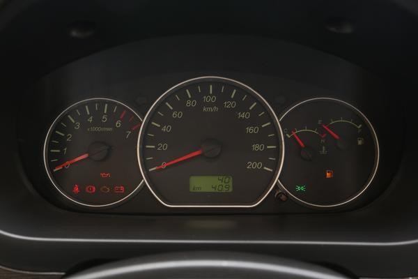 它的方向盘采用的是塑料材质,这款车型的方向盘没有多功能按键的配置,它属于传统类型,操控模式较为保守。方向盘前方的仪表盘同样是传统模式,仪表盘上有着三个物理指针式表盘,在行驶过程中,通过指针的方式去显示车身状态。
