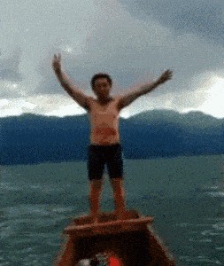 在起跳的前几秒显得格外潇洒,但最终因为误判距离,结果搞出了个大笑话。