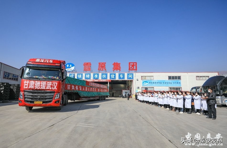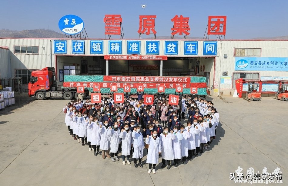 众志成城抗疫情,同舟共济渡难关。秦安雪原果业为武汉抗疫捐赠20吨“平安果”今日发车。