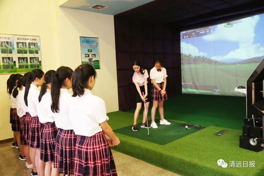 学校将高尔夫特色课程纳入体育课程中,盛兴高尔夫中心配备有两台世界顶级室内高尔夫模拟器以及大型果岭练习场,安排具有丰富经验的高协认证教练进行授课,让高尔夫课程更加专业、安全、易学、极具趣味性。