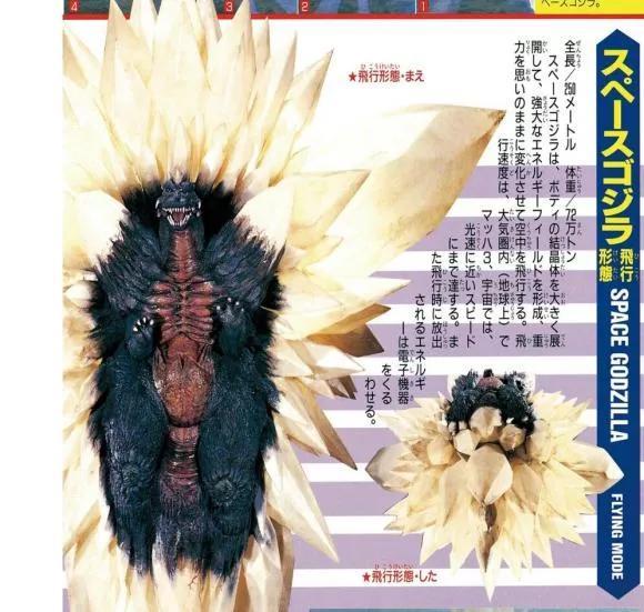 数据上太空哥斯拉身长可以从120米达到飞行状态的250米,体重72万吨相对于现如今动辄百万吨的哥斯拉、基多拉显得有些轻。