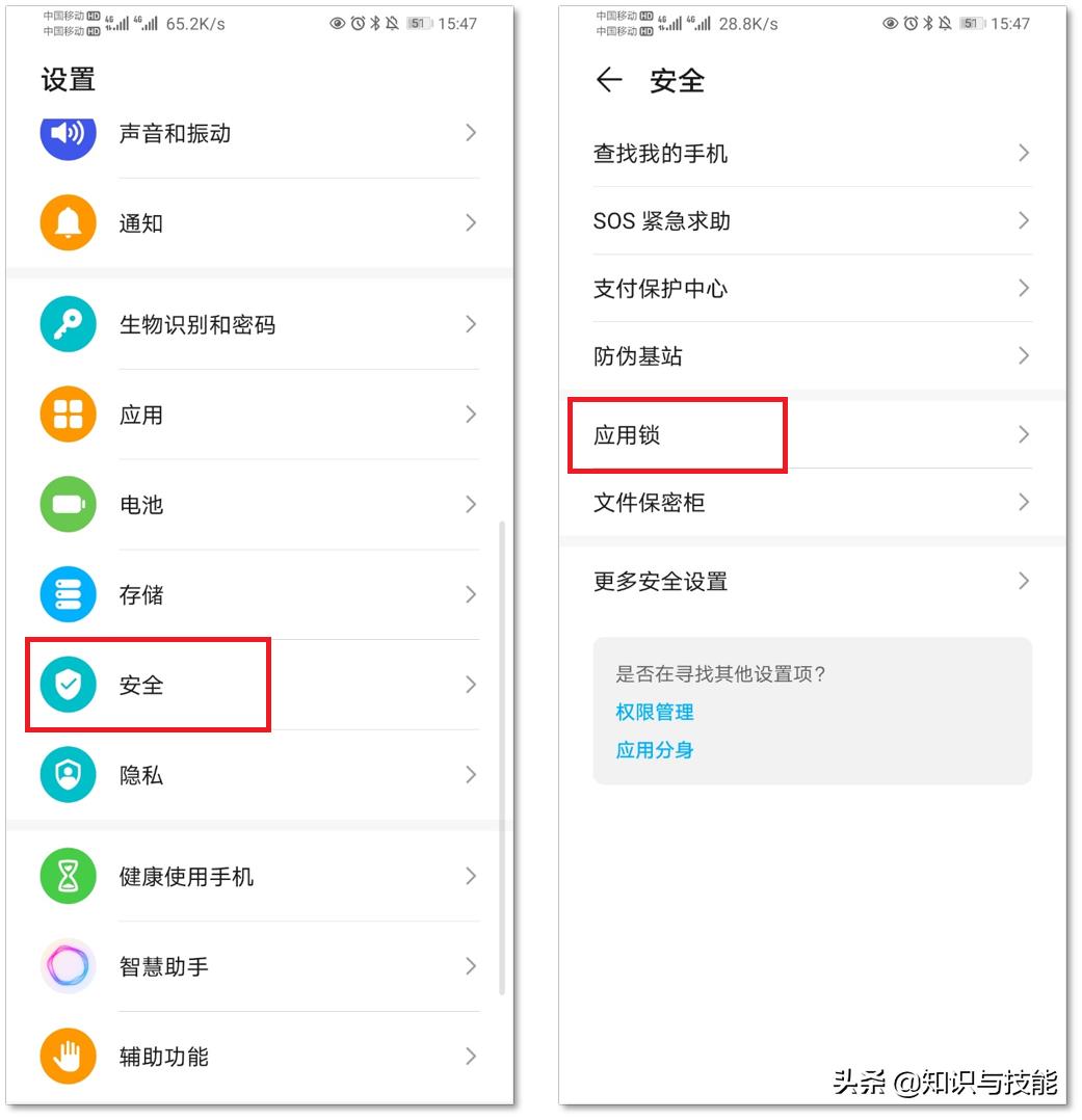 操作方法:首先点开【设置】找到【安全或者安全与隐私】,接着点击里面的【应用锁】功能。