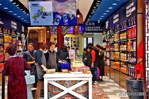 山塘街上有许多古色古香的店铺,可以品尝到地道的苏州小吃,如小笼包、生煎包、梅花糕等,还可以购买到各种精美的传统手工艺品,如苏绣、丝绸、木刻等。