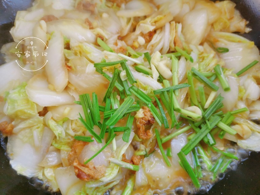 这道油渣炒白菜就做好了,记忆中的味道,你也快来试试吧。