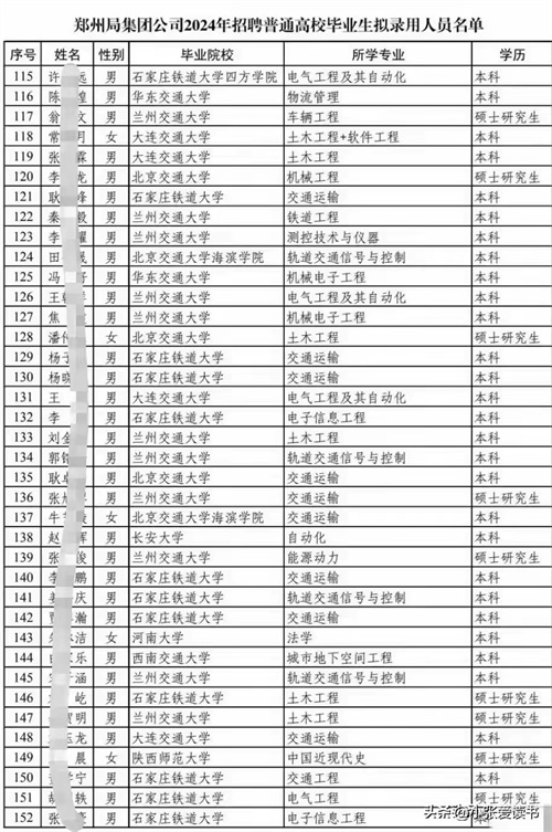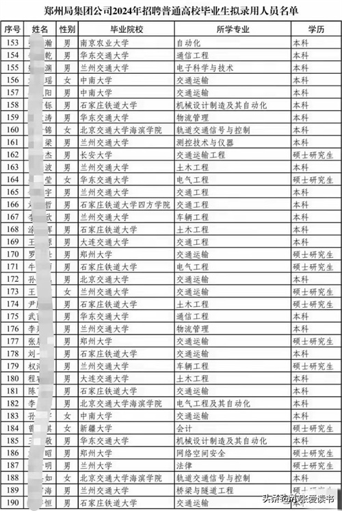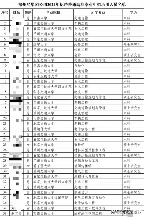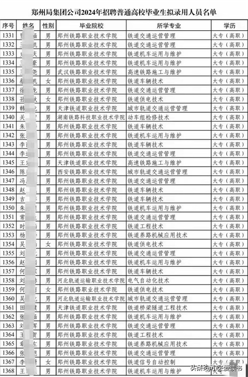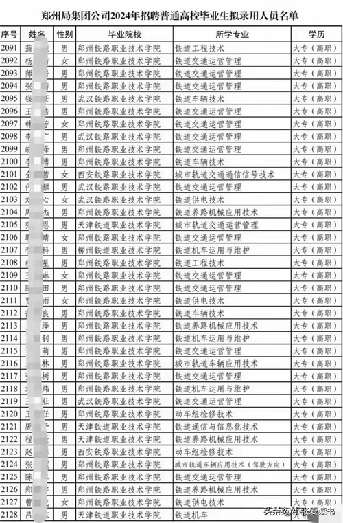 2024年中国铁路郑州局拟录用名单出炉:郑州铁院录取人数占大半!