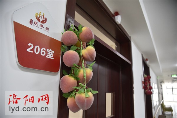 记者注意到,在每个养老房间的门牌号旁边,都悬挂着一串塑料材质的蔬果,有桃子、苹果、南瓜、豆角等。该负责人表示,这是由于一些老人记忆力不佳,可能记不清房间号,但是记住门前挂的是什么蔬果就容易得多。