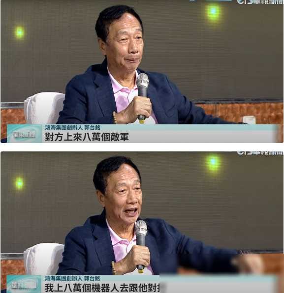 在2023年台湾地区领导人大选中,富士康创始人郭台铭的言论引起了轰动。他提出要用8万个机器人对抗可能的兵力,这一言论在当时引起了许多争议和关注。郭台铭的话语背后,既有对科技发展的乐观信心,也反映了他作为企业家对未来的畅想。然而,这一计划的可行性和实施方式仍存在许多不确定性,机器人技术在当时并未达到可以与人类士兵对抗的水平。
