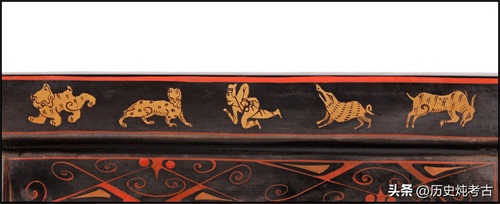 墓室还出土了两件2米多长的完整漆案,上绘有精致的花纹,像极了《山海经》中描绘的人物、走兽及植物形象,是迄今已发现的汉代漆木器中难得一见的珍品。