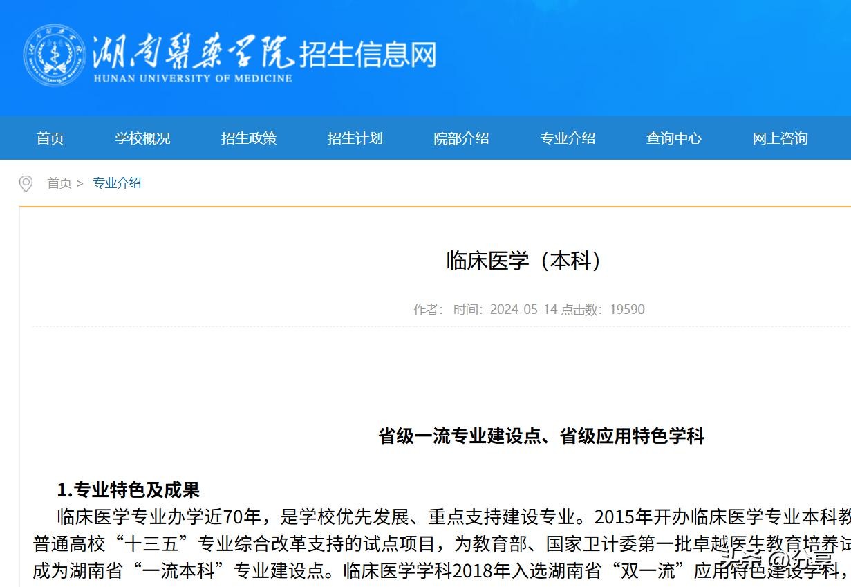 以下湖南医药学院 招生信息官网 临床医学专业介绍:临床医学专业办学近70年,是学校优先发展、重点支持建设专业。培养目标:培养德、智、体、美、劳全面发展,掌握基础医学、临床医学学科基础知识、基本理论和基本技能,具有健康促进和预防医学意识,具备初步临床能力、终身学习能力、创新意识和良好职业素质,能在各级医疗卫生保健机构从事医疗卫生服务工作的高素质应用型医学人才。