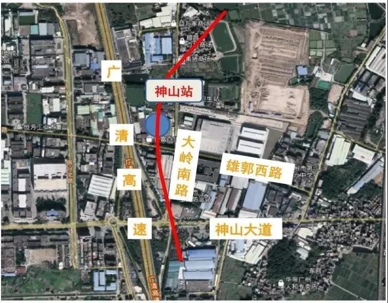 神山高架站,位于江高、神山两镇合并前的神山镇中心周边地段,地处白云西北部边陲。