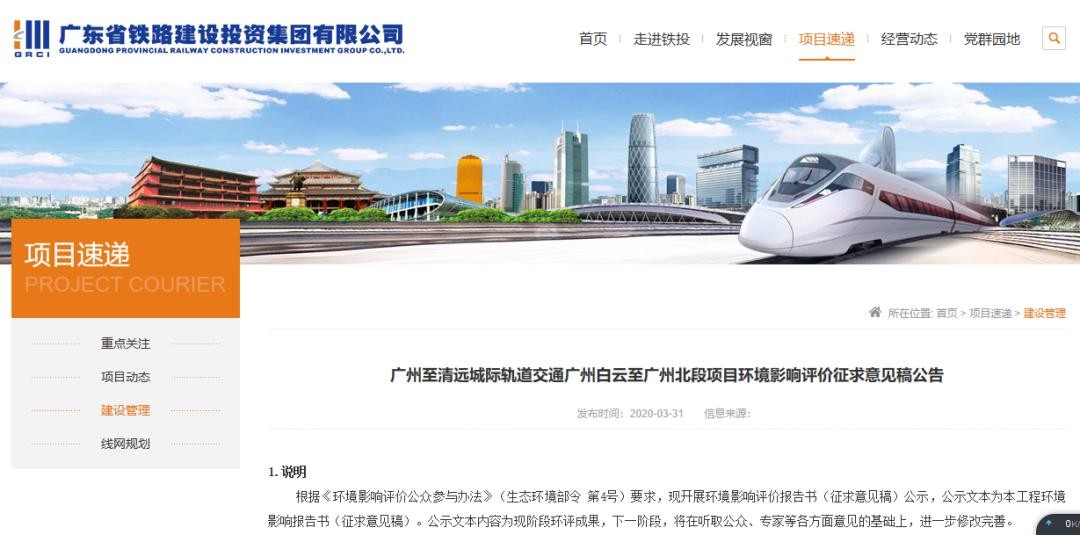 近日,省铁投集团官网发布了《广清城际轨道交通项目征求意见稿》。