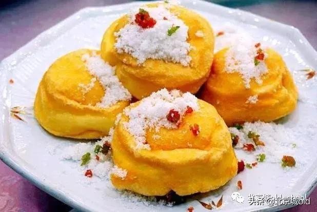 再有就是炸羊尾,名儿叫炸羊尾其实跟羊一点关系都没有,它是把打好的蛋清儿和淀粉混合在一起后借助手打蛋清儿才有的韧劲儿,然后用勺儿崴出一个个圆形的面团儿,每个面团儿都有豆沙芯儿,提溜儿圆的炸羊尾甭提多香了