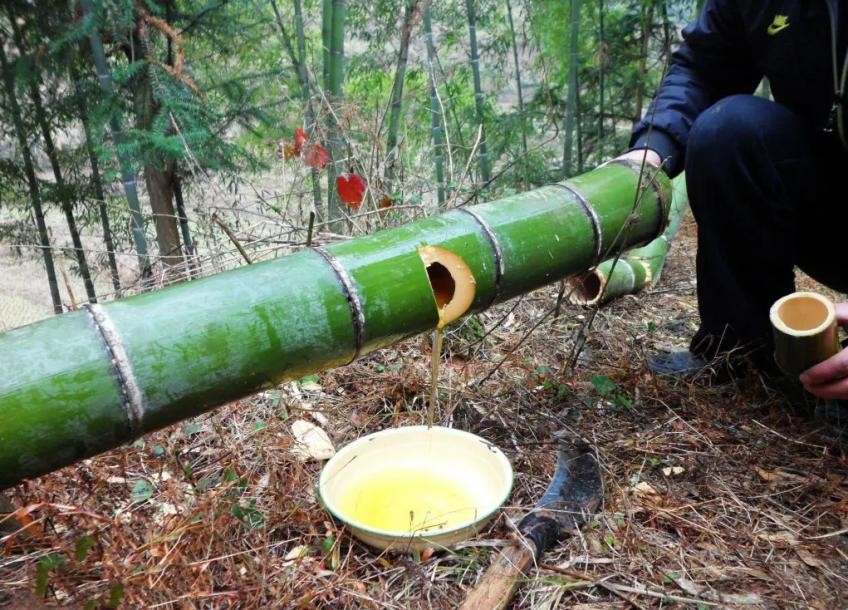 答案很简单,先用普通酒勾兑香精添加剂调好颜色,在游客到来前一天提前注射进竹子,第二天就能表演现取现喝的骗局了。