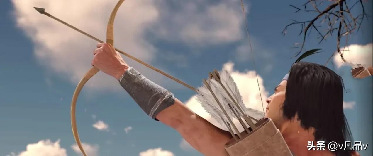 有了第一箭,他一发不可收拾,接而连续拉弓射日。