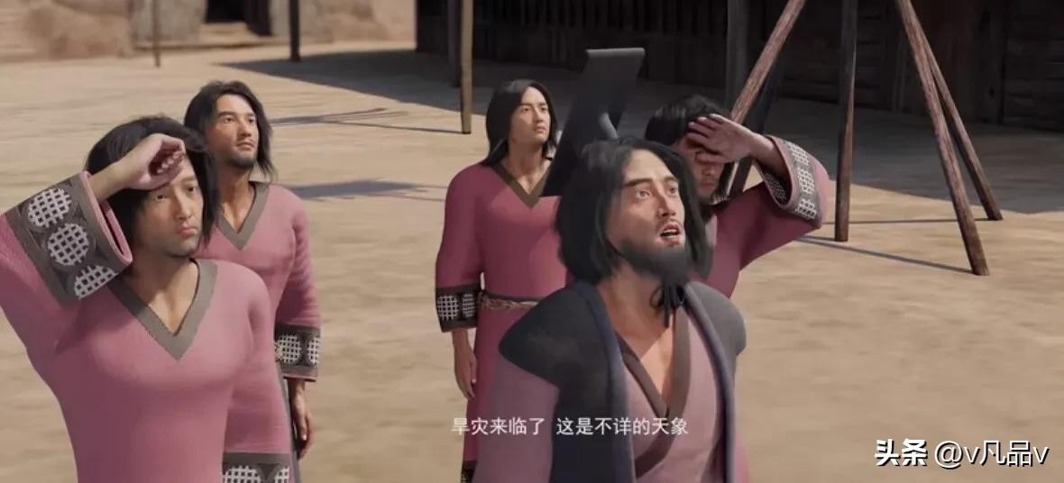 百姓惊恐万分,这种天象实属罕见,首领告诉大家:旱灾就要来临了,这是不详的天兆。