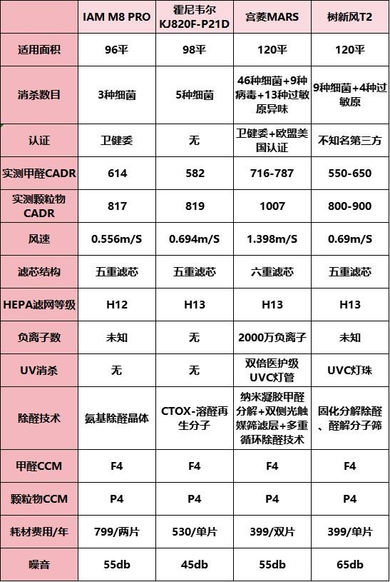 IAM具有活性炭吸附和负离子净化,但其CADR值低,甲醛去除效果不明显。如果人们长期生活在这种环境中,很容易损坏免疫系统。产品应改进电机风轮的设计,以提高净化效率。