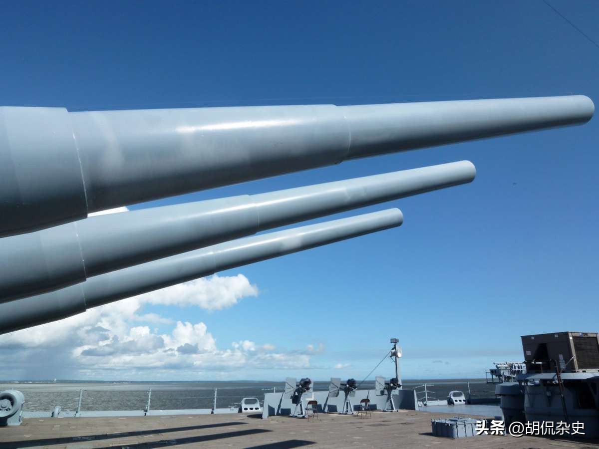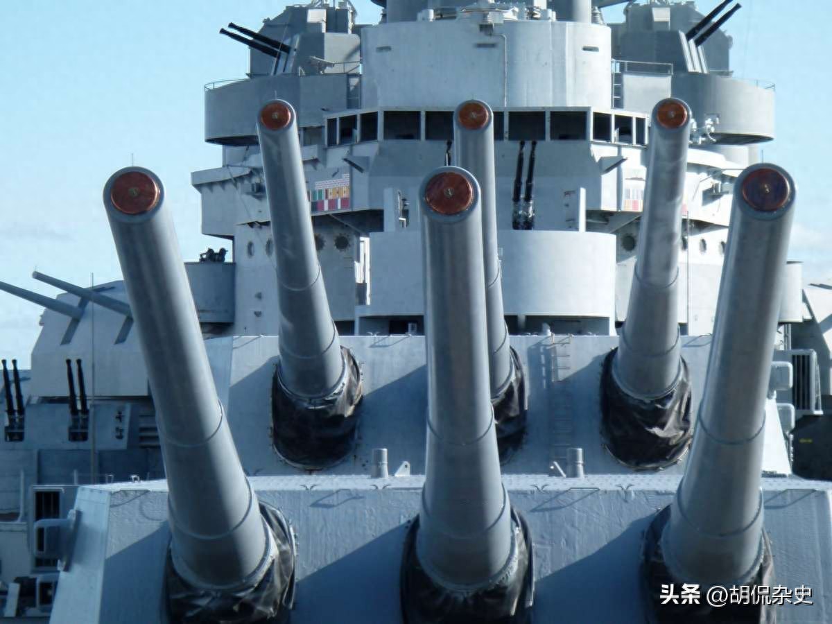 这艘战舰装备了三座三联装16英寸/45倍口径炮塔,其中前方有两座炮塔(炮塔1和炮塔2),后方有一座炮塔(炮塔3)。这些庞大的60英尺长、44吨重的炮管能够发射2,700磅的穿甲弹,射程可达35,000米!