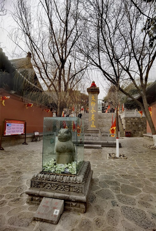 这次到河南云台山去看冰瀑,回程时顺便去了圆融寺。圆融寺在焦作市的边上,比较偏。我去的时候,正好刮大风,黄尘铺天盖地吹过来,但刮到寺庙前的停车场就不走了。