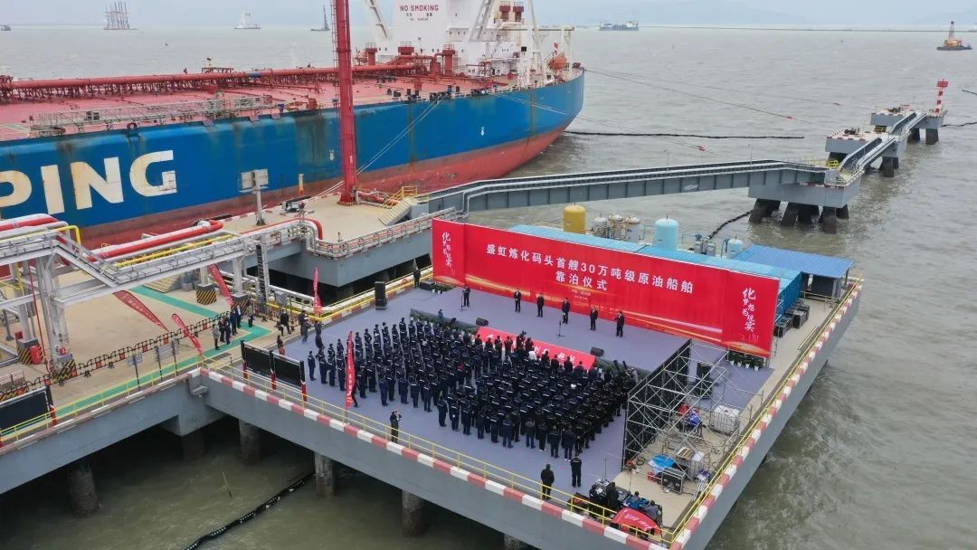 10月9日,连云港市委书记马士光宣布“盛虹炼化码头首艘30万吨原油船靠泊成功”,标志着30万吨VLCC级油轮首次在江苏顺利靠泊,盛虹炼化一体化项目原料进口通道全面贯通。