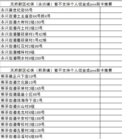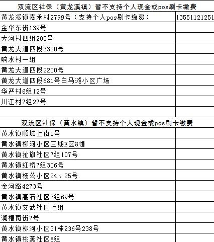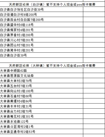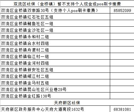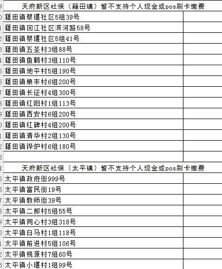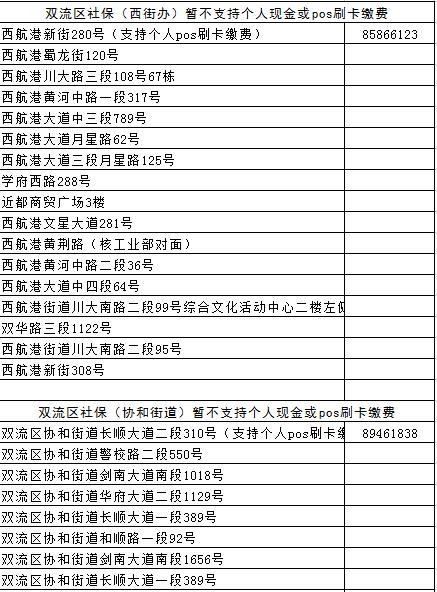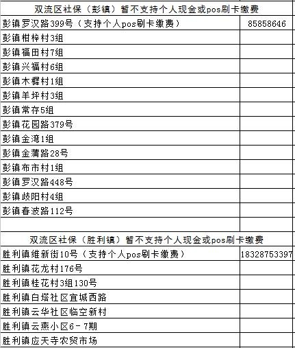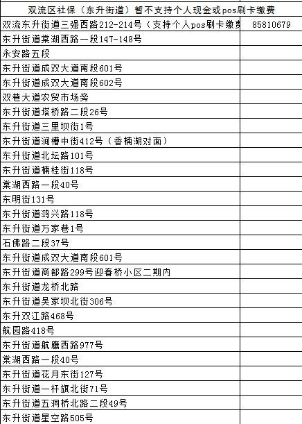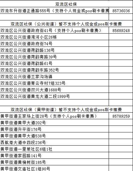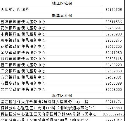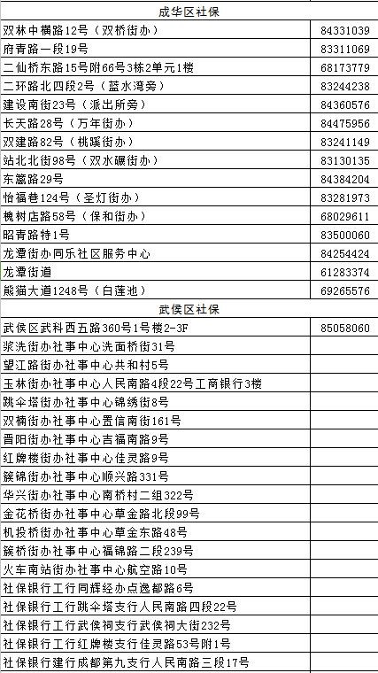 成都各区(市)县社保经办网点地址汇总