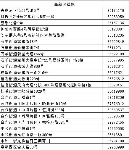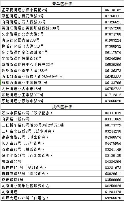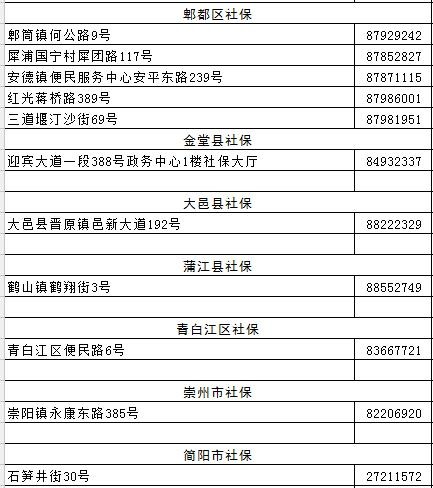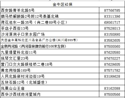 成都全搜索新闻网4月20日讯今日,市人社局公布成都市各区(市)县社保经办网点地址及电话(截止到2017年4月),原文如下: