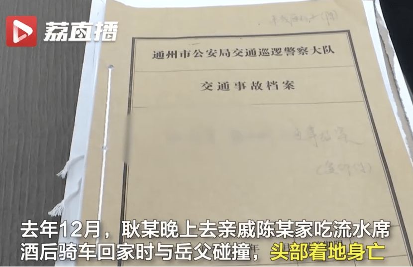 据江苏新闻报道,5月23日,南通市通州区法院工作人员来到五接镇调解一起酒后骑车身亡的责任纠纷案。去年12月,南通的耿某去亲戚陈某家吃流水席,酒后骑车回家时撞上岳父,头部着地身亡。耿某家属将主家陈某和同桌喝酒的3人告上法庭,索赔50余万元。