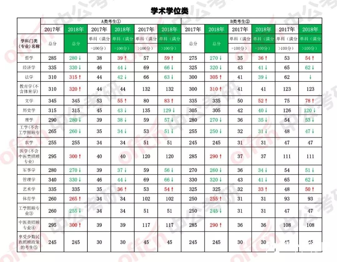 2018年全国硕士研究生招生考试考生进入复试的初试成绩基本要求(学术学位类)