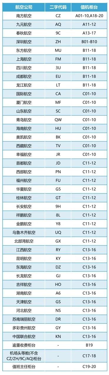C01-10柜台:国际航空CA、厦门航空MF、山东航空SC、青岛航空QW海南航空HU、奥凯航空BK、西藏航空TV、幸福航空JR