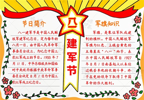 最后一步就是根据主题写上相关的文字内容啦!一张漂亮的建军节手抄报就画好啦!