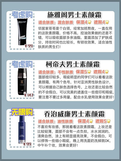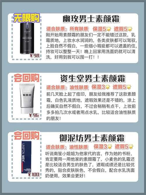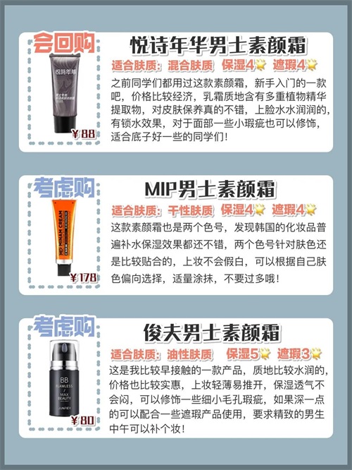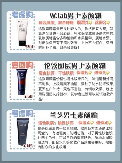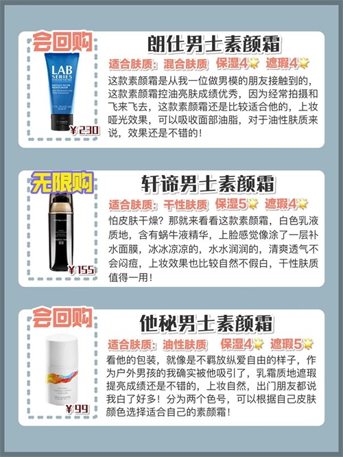 后来就开始慢慢入手了好多男士素颜霜, 果然皮肤有所改善, 所以今天就给大家做了一个男士素颜霜清单,供大家参考!