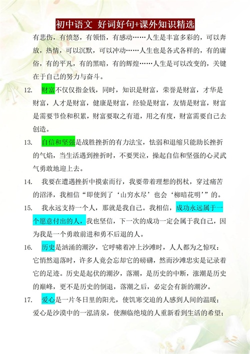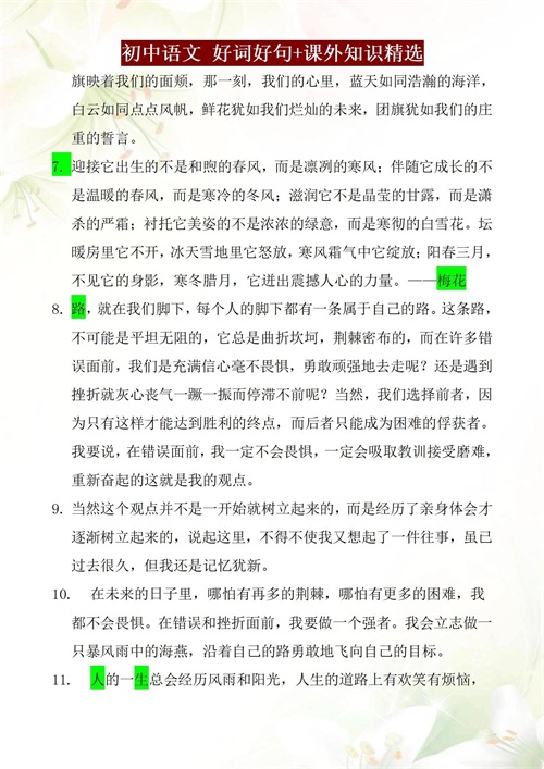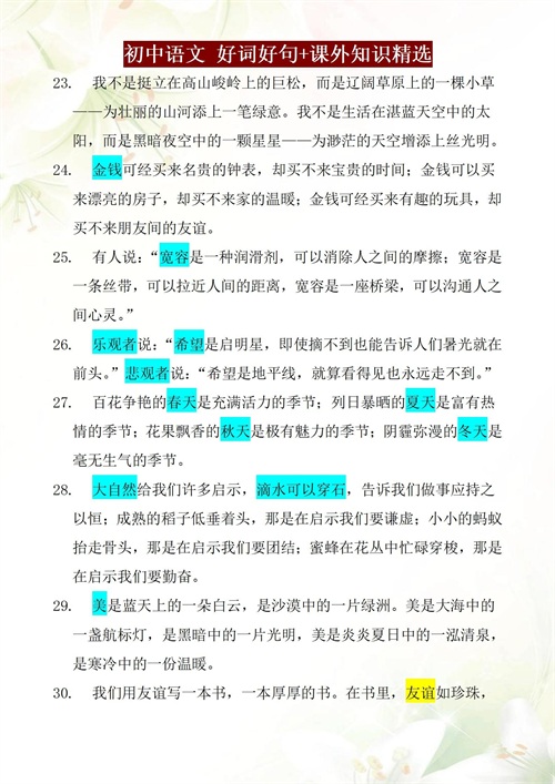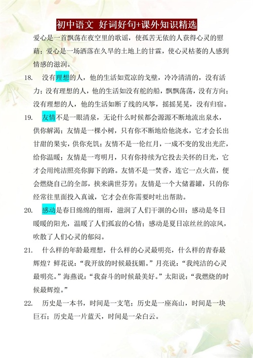 初中语文,好词好句汇总,提升写作能力,这些内容一定要多积累