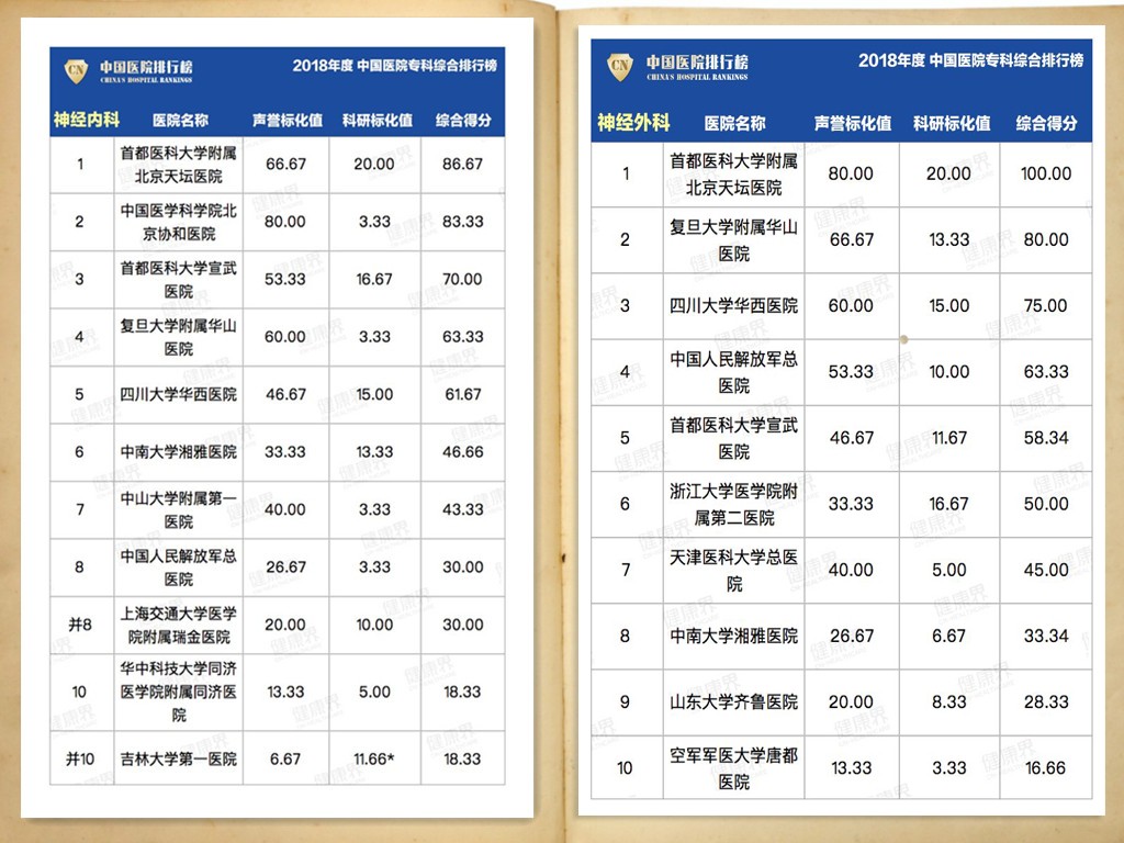 2018全国医院排行榜出炉 北京天坛医院神内神外双双排名第一