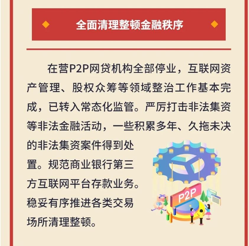 4月15日,中国人民银行在“4·15全民国家安全教育日”发布文章称,在营P2P网贷机构全部停业,互联网资管、股权众筹等领域整治工作基本完成,已转入常态化监管。