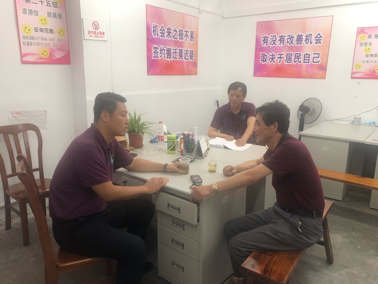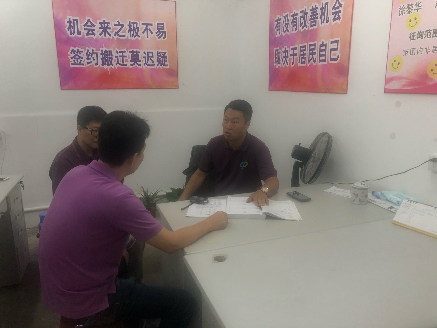 在杭州路217号的大桥88街坊征收基地现场,杨栋正在接待来访群众的咨询。尽管从事征收工作已19个年头,他都雷打不动地扎根在基地一线。