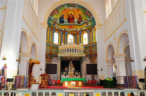 6.中国唯一的祝圣教堂,圣弥爱尔大教堂,始建于1932年,教堂大厅面积1896平方米,高18米,可容千人。它是青岛地区最大的罗马式建筑,同时也是基督教建筑艺术的杰作。