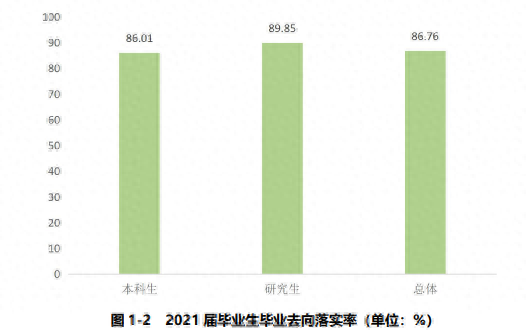 据该校公布的2021年就业质量报告显示:学校2021年毕业生总体去向落实率为86.76%,如图: