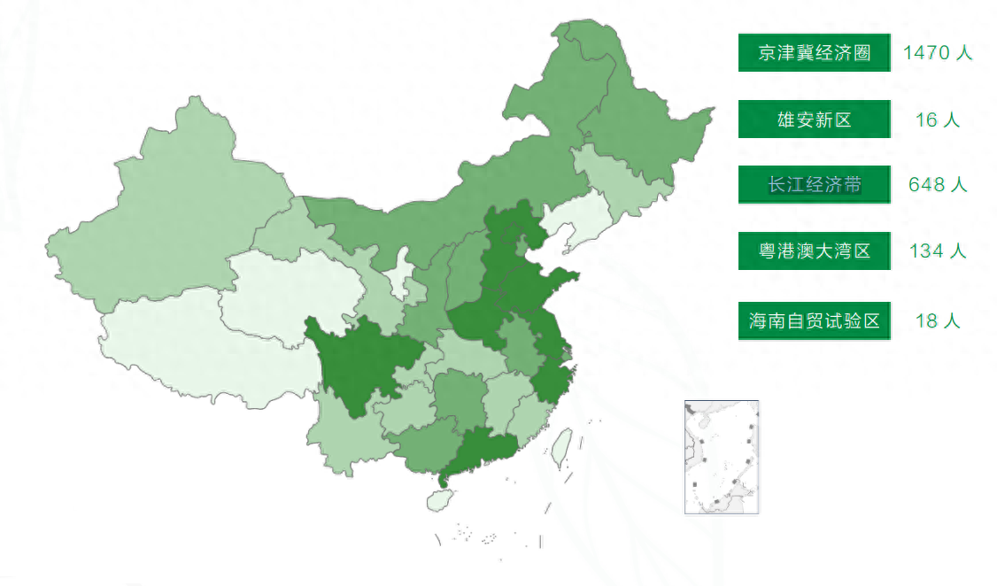 在就业的这些人中,大部分流向京津冀经济圈就业,其次是长江经济带,如图:
