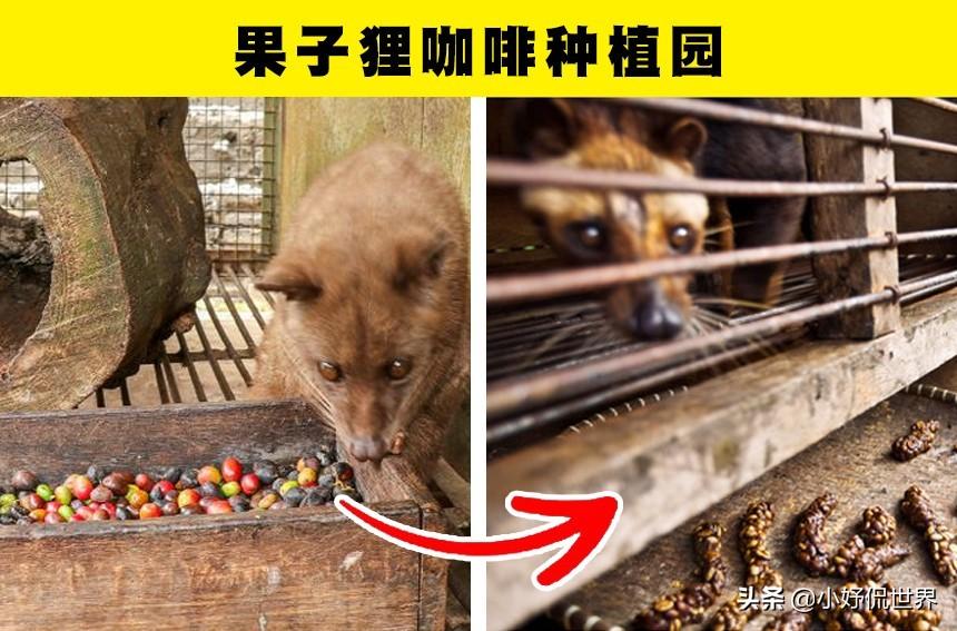 猫屎咖啡是这个世界上最昂贵的咖啡之一。它是一种通过果子狸或麝香猫的消化道消化过后的一种咖啡。这一类动物喜欢吃咖啡果实,并且不会将其完全消化掉,因此可以使人类获得这种独特的原料。然而,在市场需求增大的情况下,这些动物会被关在狭小的空间里,让它们在压力的驱使下进食更多的咖啡樱桃,以产出更多的粪便。但这对于他们来说很危险。