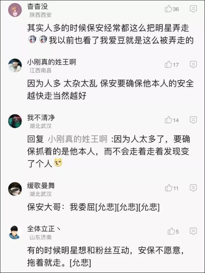 除去谣言,也有网友觉得视频中安保人员的处理方法不妥,不好好地让艺人走路为啥非得拽着走?