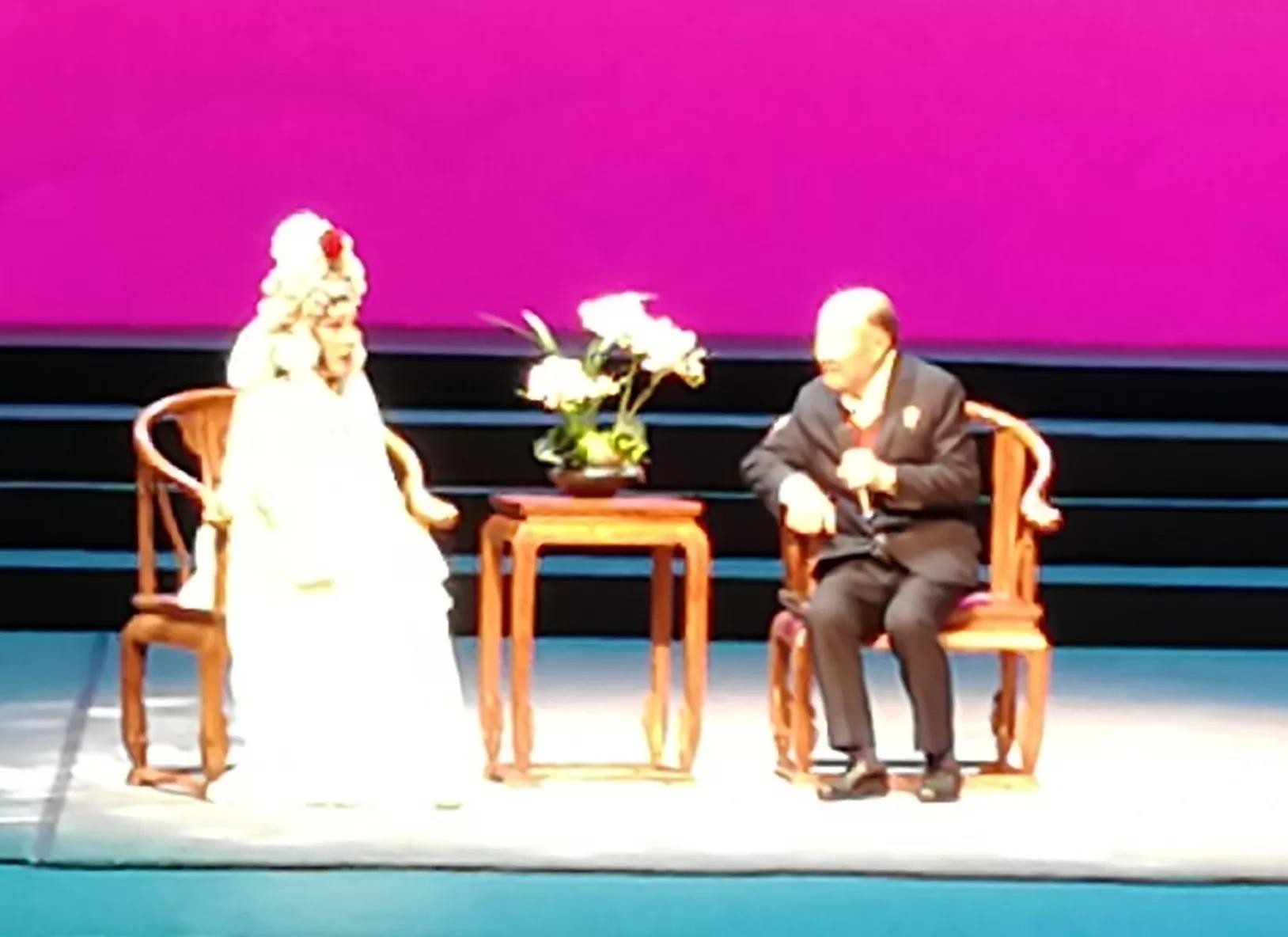晚会还特别邀请到广州市原市长、广州市振兴粤剧基金会会长黎子流和广州市人大常委会原主任陈建华两位重量级嘉宾助阵演出。其中90岁的黎子流与倪惠英登台亮相进行的粤剧对唱《高歌一曲百万行》,激昂的唱腔,大气唯美的舞台构造,引人入胜的曲韵,展现了改革开放羊城教育百万行时代的印记,现场观众瞬间发出热烈的掌声。晚会最后由倪惠英与儿子、优秀青年歌手黄智毅等合作演出了歌舞《心曲》,人们纷纷争相留影并发朋友圈分享。