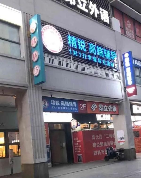 曾经不少商场因为培训而被带火。比如上海知名的美食街梅川路步行街,就因培训机构的“异军突起”(一楼沿街店铺开美食店,二楼、三楼就逐渐被课外辅导机构所占领)被网友们戏称为“培训一条街”。