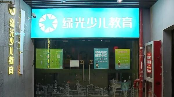但是上周末,这里似乎已经没有了往日熙熙攘攘的人群,绿光少儿教育位于二楼的大招牌更是已经被胶带封掉了。