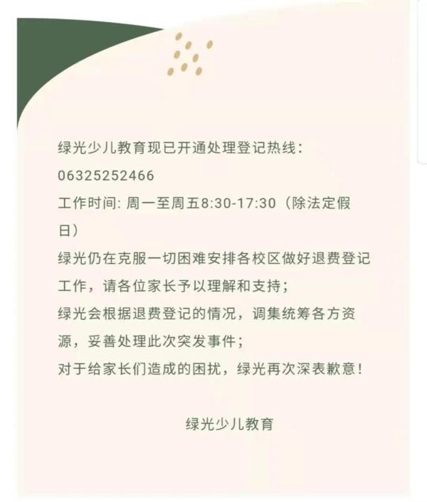 绿光教育突然关停未退学费2500万