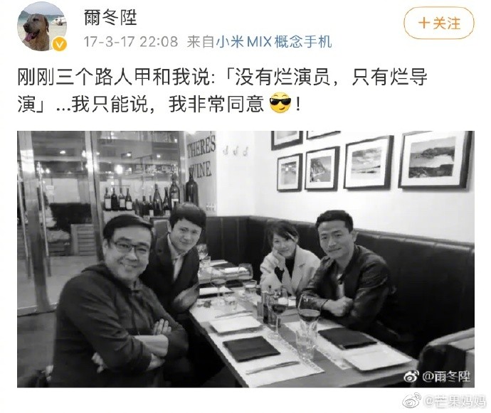 话说,尔导真的是个很有意思的人,我也看过他导的一些电影,对他有一点了解,出身演艺世家,和秦沛、姜大卫是兄弟,妈妈是叶赫那拉·红薇。