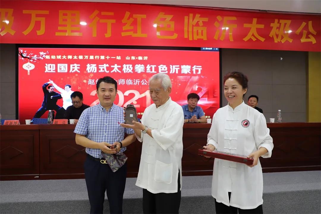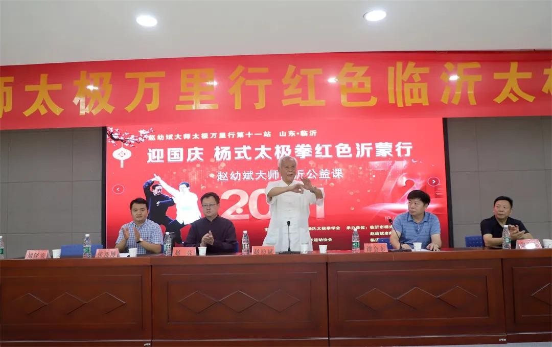 9月28日中秋刚过,满城的喜庆尚未散尽,在秋意正浓丹桂飘香中赵幼斌先生的太极万里行走进书圣故里、红色临沂,开展“迎国庆杨氏太极拳红色沂蒙行”公益活动。