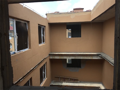 半岛记者注意到,小区楼内所有门窗全部被拆除,客厅已经搭上了脚手架,但由于被查封,再加上多日降雨,有的脚手架已经生锈。此外,新房地面上遍布石块,从南侧一个卧室看,客厅位置“悬空”,一伸头就可以看到天空。